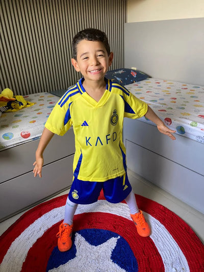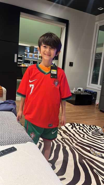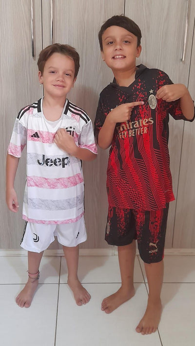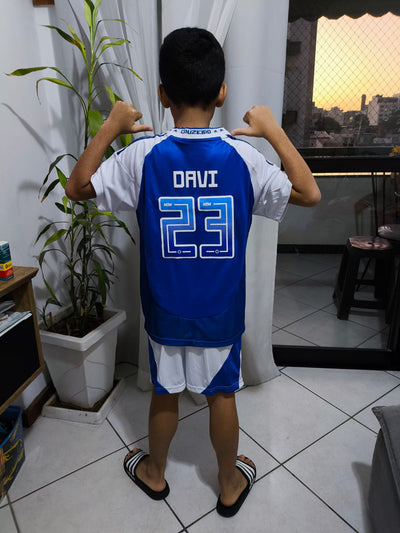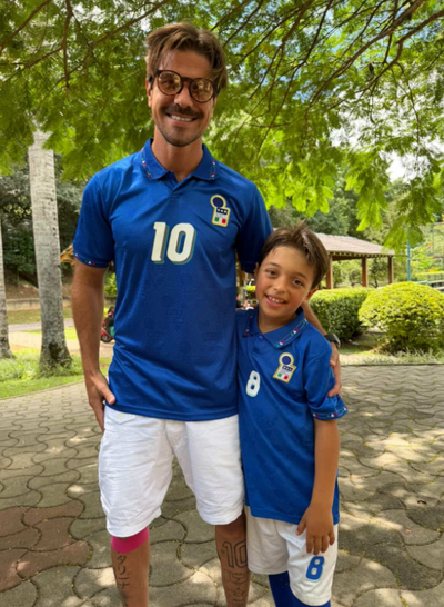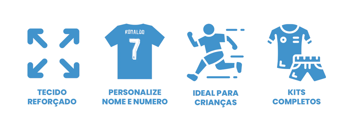 Tecido leve, escudos bordados e acabamento de 1ª linha.